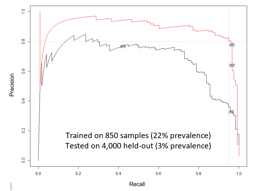 The client receives approximately 50 thousand audits per year. Audit reports are multi-document PDFs ranging in size from dozens to hundreds of pages and comprised of a mix of machine-readable text and scanned images. We extracted approximately 12 million PDF pages (for about five years of audits), performed text mining, and incorporated other structured data sources to assign risk scores to recipients. A model ensemble that included a Convolutional Neural Network (CNN) and a Recurrent Neural Network (RNN) was used to classify pages during text mining. We found that the structured data only documented about half of the actual Findings. The document classification system identified audit findings with 81% precision and 95% recall rates as shown in Figure 1.