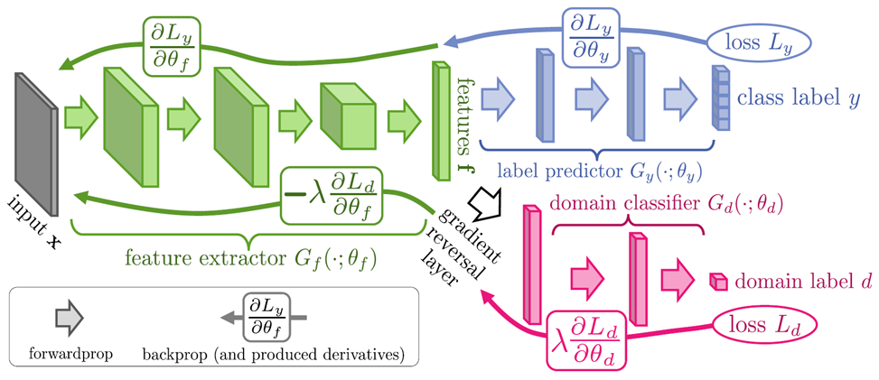 Figure 4. Domain Adversarial Neural Network architecture (Figure reproduced from Ganin and Lempitsky)